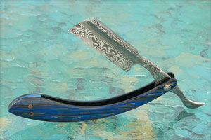 Damascus Straight Razor with Blue/Copper Carbon Fiber |