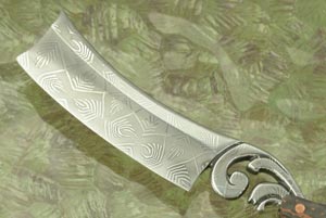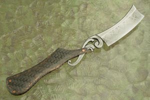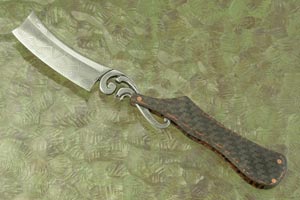 Blade: Mosaic damascus, hand forged from carbon steel by Bill Poor