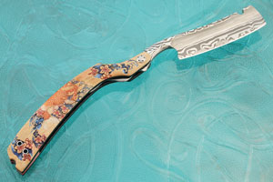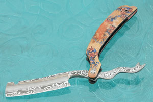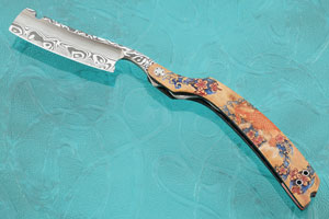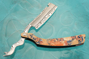 Product Description for Carved Koi Damascus Straight Razor with Mopane
