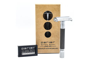 Description: This butterfly double edge safety razor by Parker (74R-GR) is among their most popular safety razors. It is designed for both men and women. It is highly textured which makes shaving in the shower with wet, soapy hands a breeze. This razor is crafted with a handsome graphite and satin chrome finish for a luxuriously close and comfortable shave. It has an aggressive textured handle for grip, a nice heft and a wonderful balance. With its traditional butterfly twist-to-open design, changing blades is a snap, making it an excellent razor for new and experienced wet shavers!