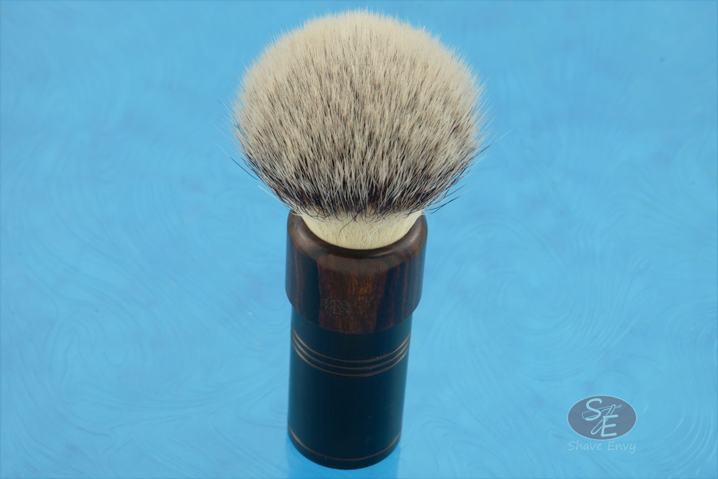 John Leitch crafted this shaving brush. The handle combines a black mil-spec aluminum base with premium Arizona desert ironwood. The handle has an elegant heft, is easy to clean, and comfortable to hold.