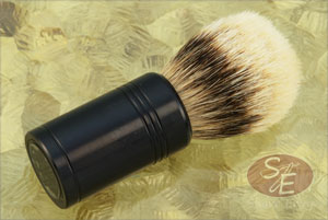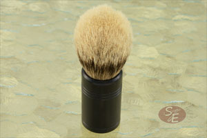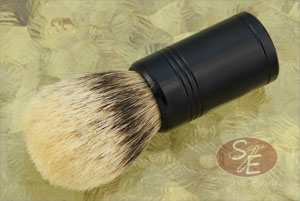 John Leitch began this handmade shaving brush by turning the handle from aluminum and giving it a black anodized finish. The contoured surface provides a comfortable, secure grip that has an elegance to its simplicity.