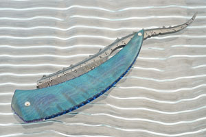 Description: Stuart Kerr is a knifemaker and razor maker from Queensland, Australia. When he wanted a straight razor made and couldn’t find one for an affordable price, he decided to make one. Over the years, he became the go-to guy for straight razors in Australia. Though he makes beautiful, clean, classic looking razors, he is possibly best known for his carved, whimsical ones. Stuart is not afraid to push the boundaries of what is possible and has many ‘one-off’ custom designs. He continues to want his work to stand out and perform, always looking for new and different material for his handles and expanding his range of steels he works with.