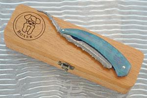 Handle: Dyed and stabilized maple set on a thin layer of carbon fiber