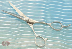 The damascus steel used in these scissors is forged from two stainless steel alloys, repeatedly folded and tempered. The result of this forging method is an extremely pure metal structure that combines strength with flexibility, a unique dampening property (which transmits the cutting feel), and a stunning water flow pattern, typical of damascus. Hairdressers have praised these scissors for ergonomics that make the scissors an extension of the hand.