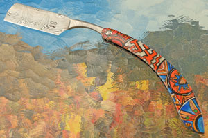 Product Description for Damascus Straight Razor with Hand Painted Scales