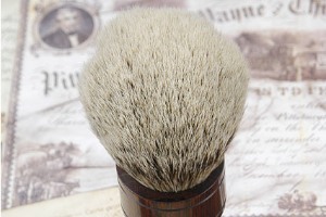 John Leitch began this handmade shaving brush by turning the handle from Honduras rosewood. The handle is well polished, and provides a comfortable hold. The bristles are silvertip badger, which is the very highest quality specification for badger bristle. The bristle heads were made for John by Progress Vufix Company located on the Isle of Man -- a company with over seventy years experience. The brushes can be used on a daily basis and will likely endure for thirty or more years.
