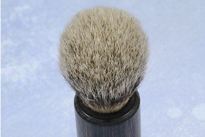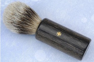 John Leitch began this handmade shaving brush by turning the handle from Paakawood. This resin impregnated wood combines the beauty of natural woods with the stability of synthetics. A central mosaic pin completes the handle. The handle is well polished, and provides a comfortable hold. The bristles are silvertip badger, which is the very highest quality specification for badger bristle. The bristle heads were made for John by Progress Vufix Company located on the Isle of Man -- a company with over seventy years experience. The brushes can be used on a daily basis and will likely endure for thirty or more years.