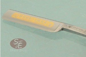 Description: The Dovo Inox Straight Razor with Olive (415875) combines simplicity and elegance in this easy to maintain stainless steel straight razor. This razor has a 5/8" full hollow ground ice-hardened stainless steel blade with gold details. A 5/8" blade is the perfect balance point between being a large enough blade to easily slice through thick, coarse hair while being small enough to shave under your nose or around your ears without a mishap. This also makes it a perfect beginning straight razor, which lets you decide if you will prefer a slightly longer or shorter razor in the future. The carbon steel blade must be rinsed and dried completely after each use to prevent rusting, but rewards with an exceptionally keen and long lasting edge. We recommend using camellia oil for easy maintenance.