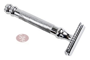Description: This three-piece double edge safety razor by Parker (98R) has a wonderful heft. Its knurled handle makes it terrific for use with wet and soapy hands. Parker's famous three piece razor head delivers and excellent shave - both close and comfortable.