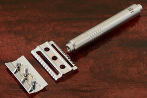 The head on this razor is the R-89 closed comb made in Germany by the Hans-Juergen Muehle GmbH & Co. KG. Safety razors with closed tooth comb allow a gentler shaving technique. Guided by a sure hand, they produce a perfect result, including perfect contours for the sideburns or the beard line. The internal thread of the handle will also accomadate many other brands of safety razor heads made in Europe.