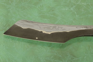 Blade: Hand forged san mai blade -- Aogami 2 (blue 2) surrounded by 22 layers of damascus